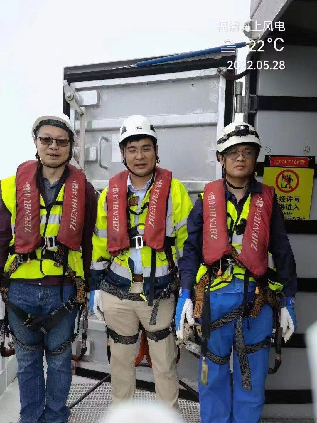 5月27日,钱江电气工程服务团队在总工程师刘军的带领下,赶赴福清兴化湾海上风电试验场,对我公司生产的3台海上风电变压器(SRSPSB-F-6800/35),进行了仔细检查,并现场取回变压器冷却液样本。经过公司试验站的全面检测,各项数据满足相关标准要求。